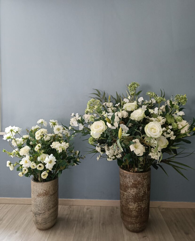 De bloemcreaties worden zorgvuldig en op maat samengesteld. Deze stukken vragen geen onderhoud en blijven altijd mooi.